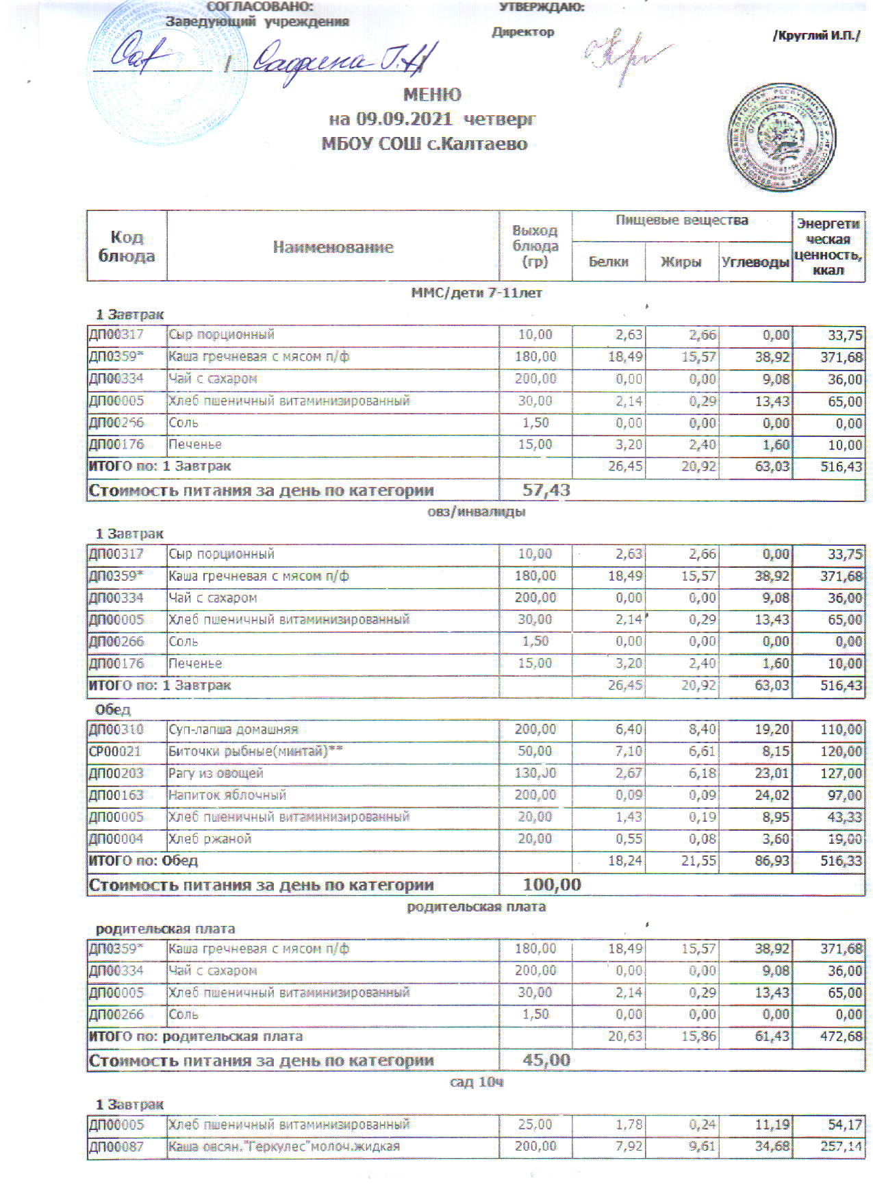 меню на 09.09.21 школа