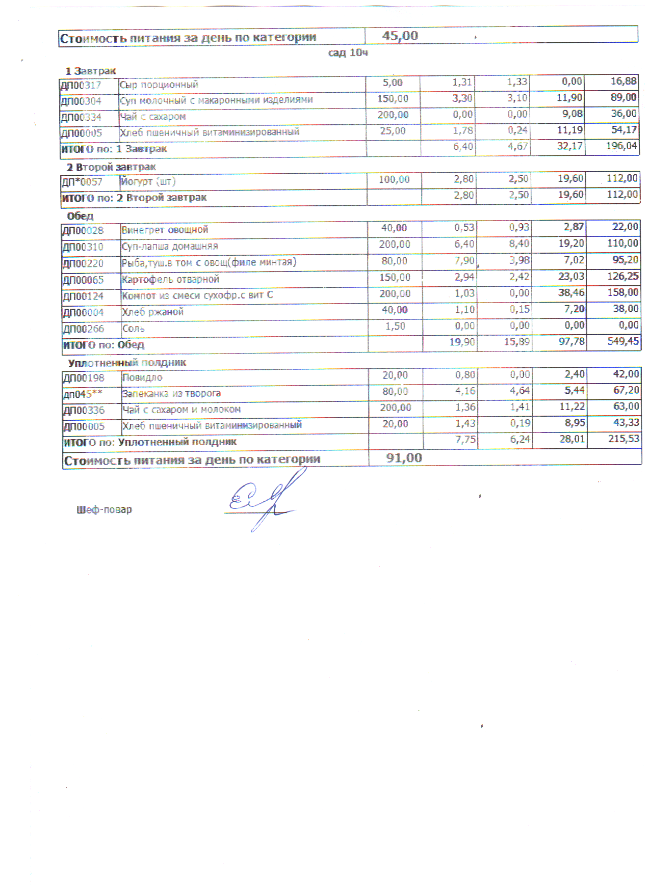 Примерное десятидневное меню.
