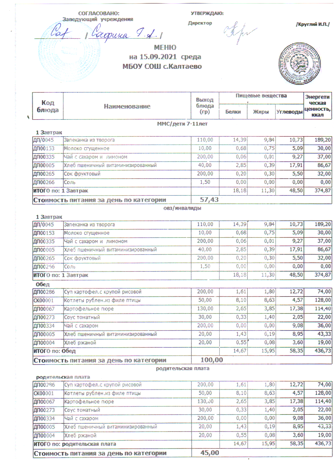 меню на 15.09.21 школа