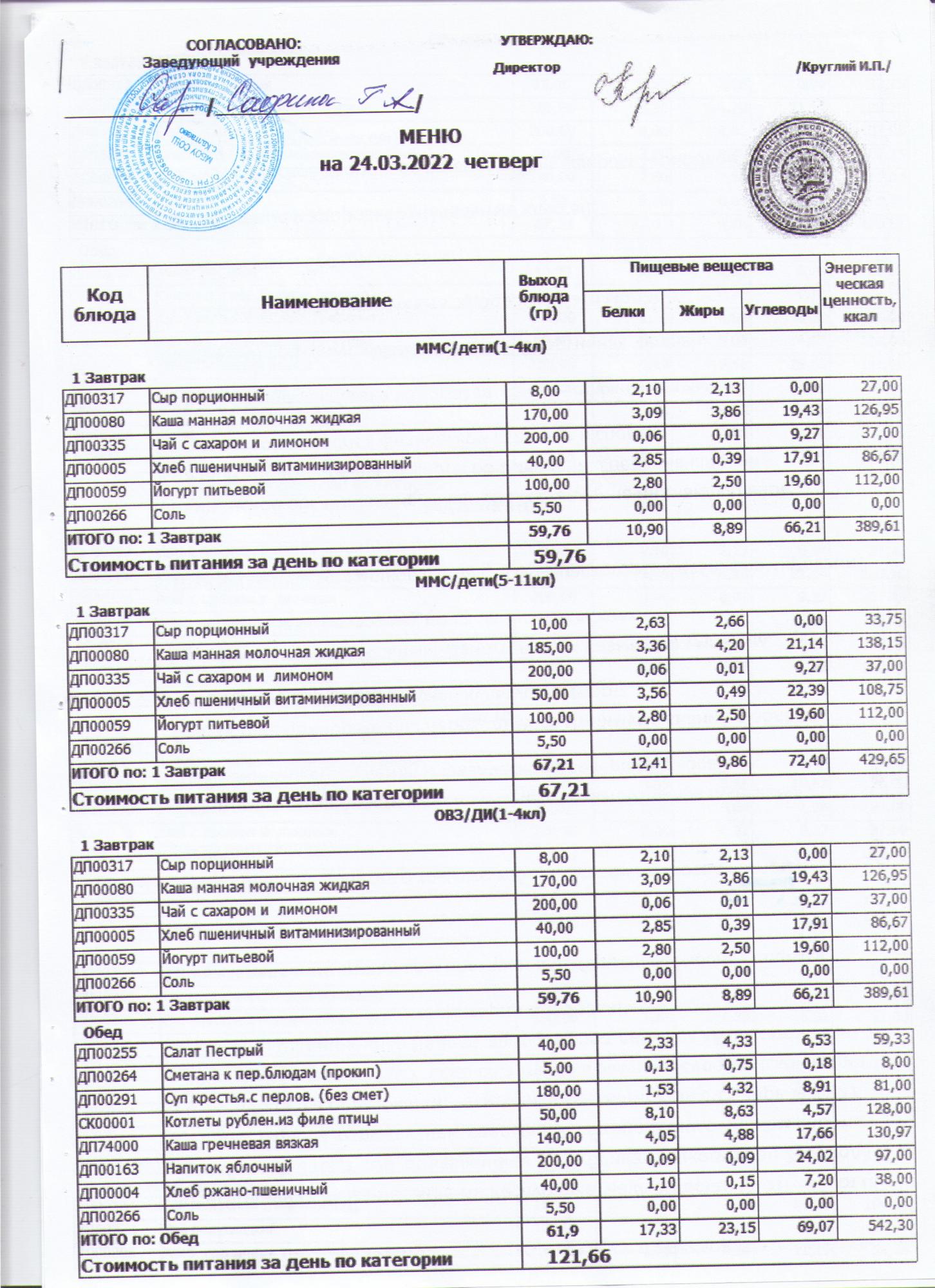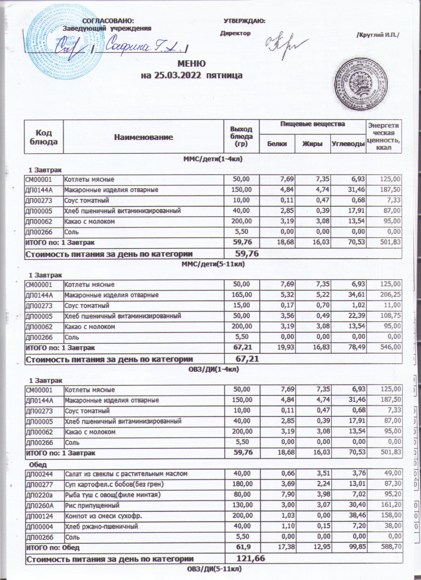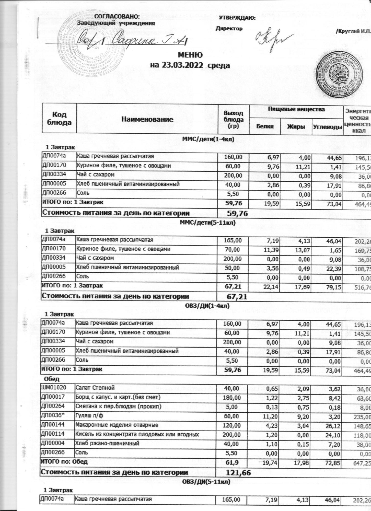 Размер обеспечения горячего питания обучающихся льготных категорий
