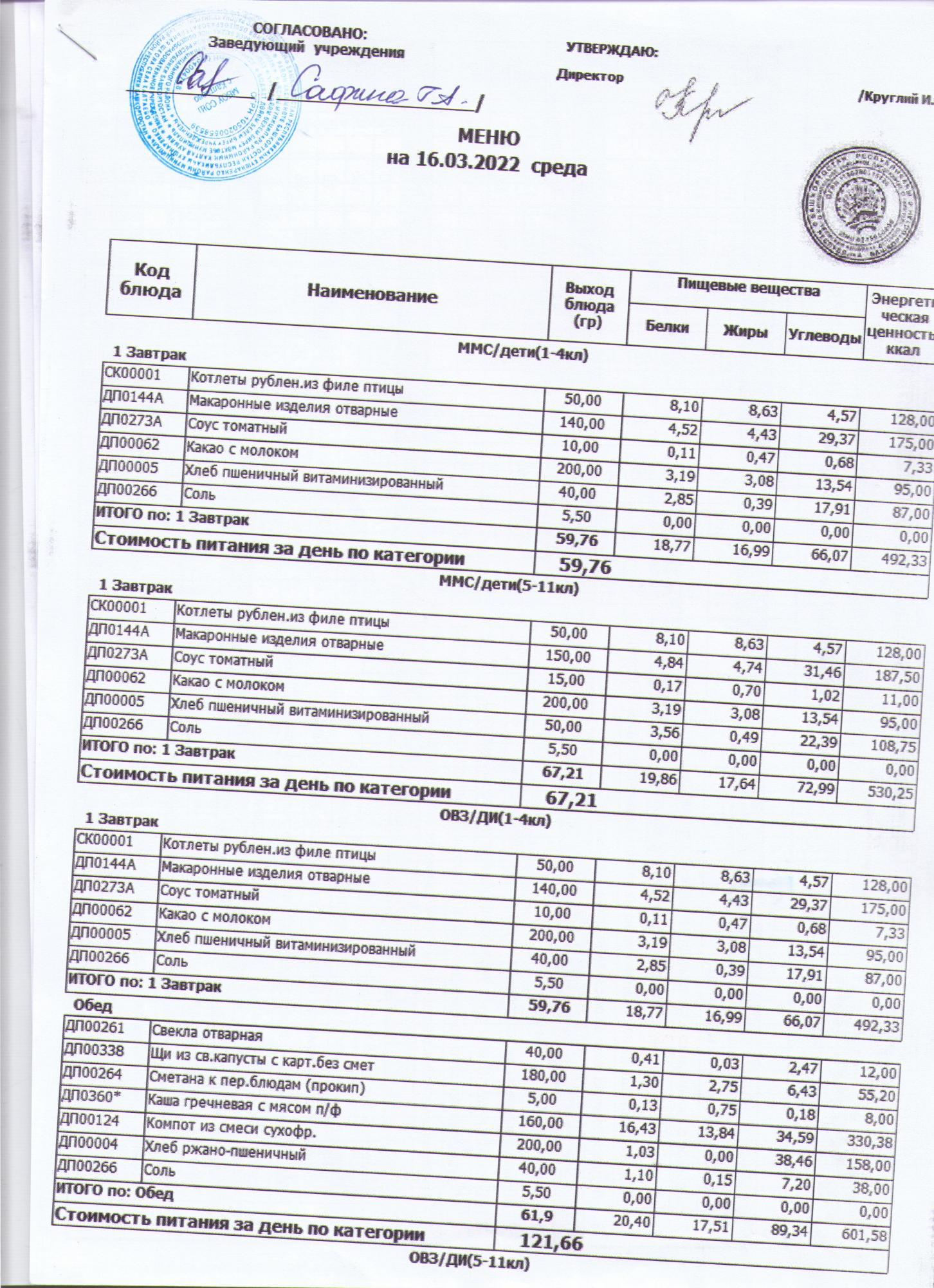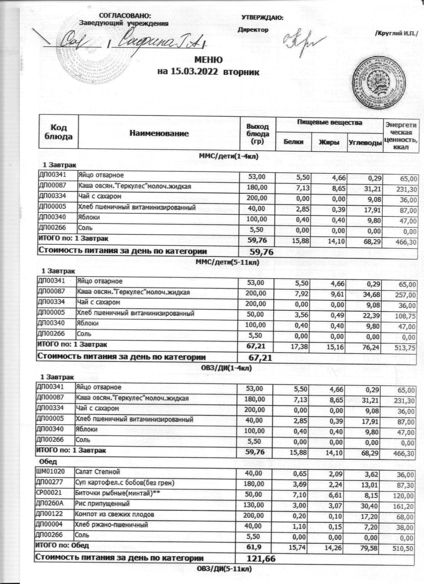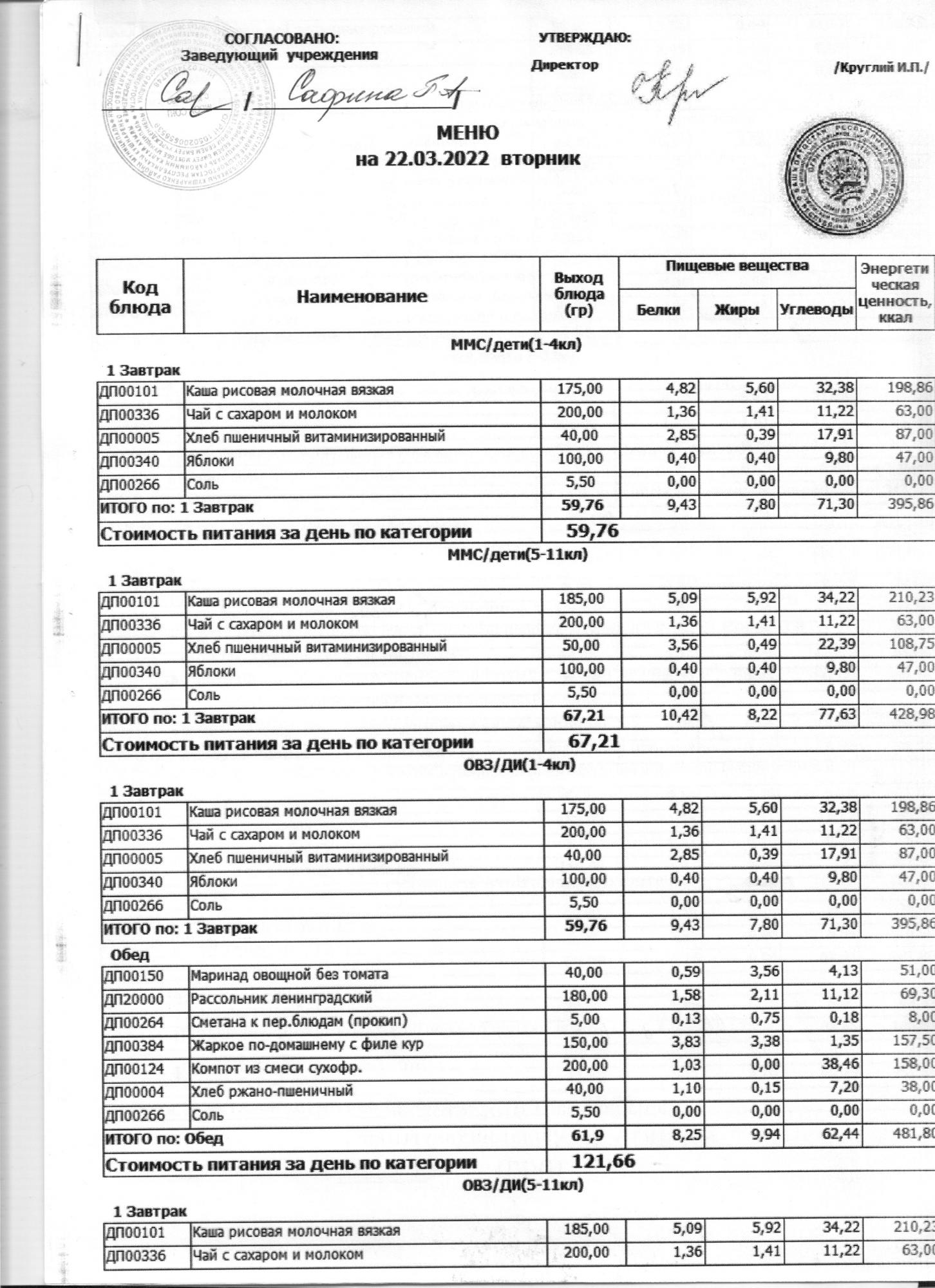 Размер обеспечения горячего питания обучающихся льготных категорий