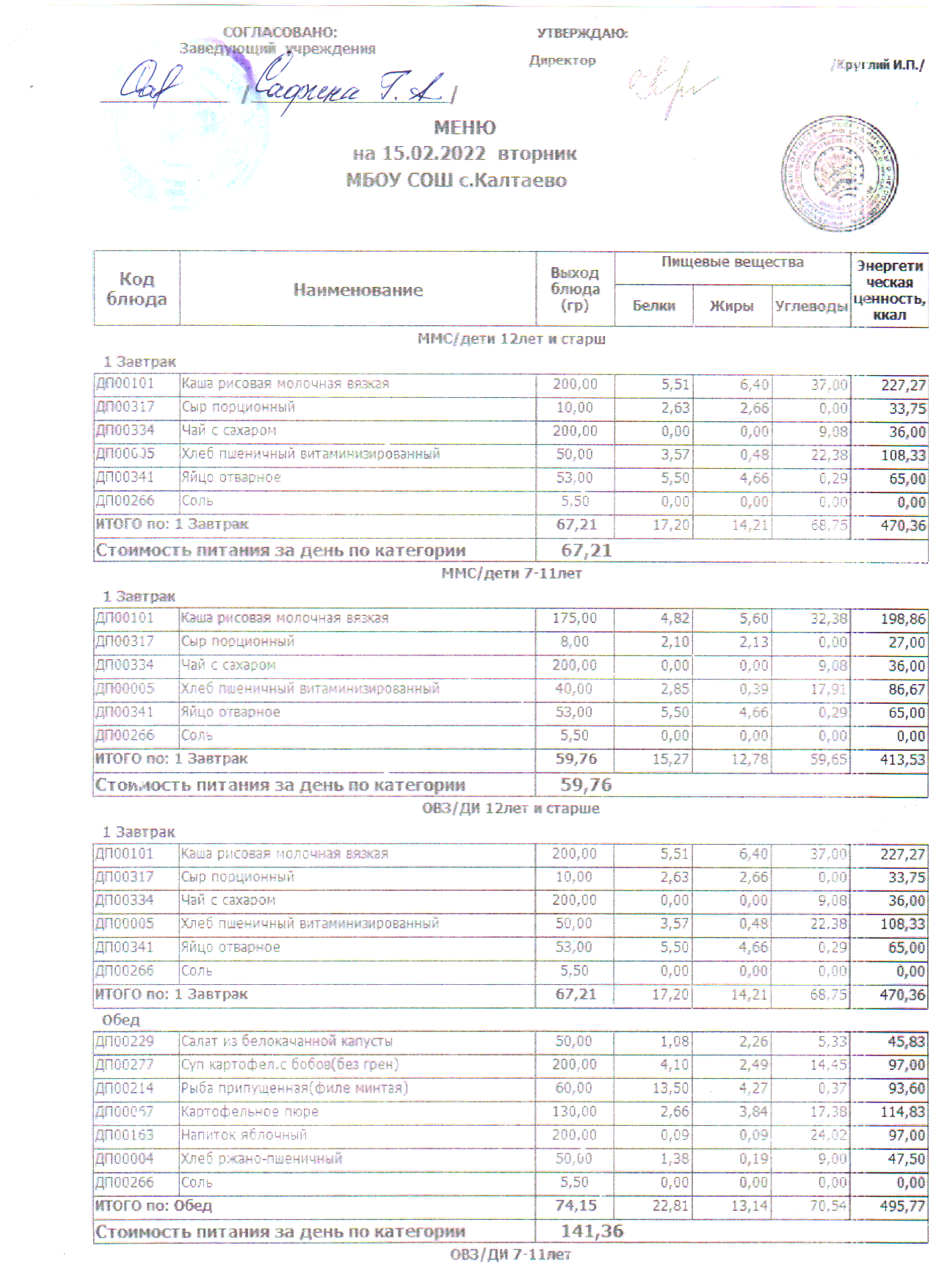 меню на 15.02.2022