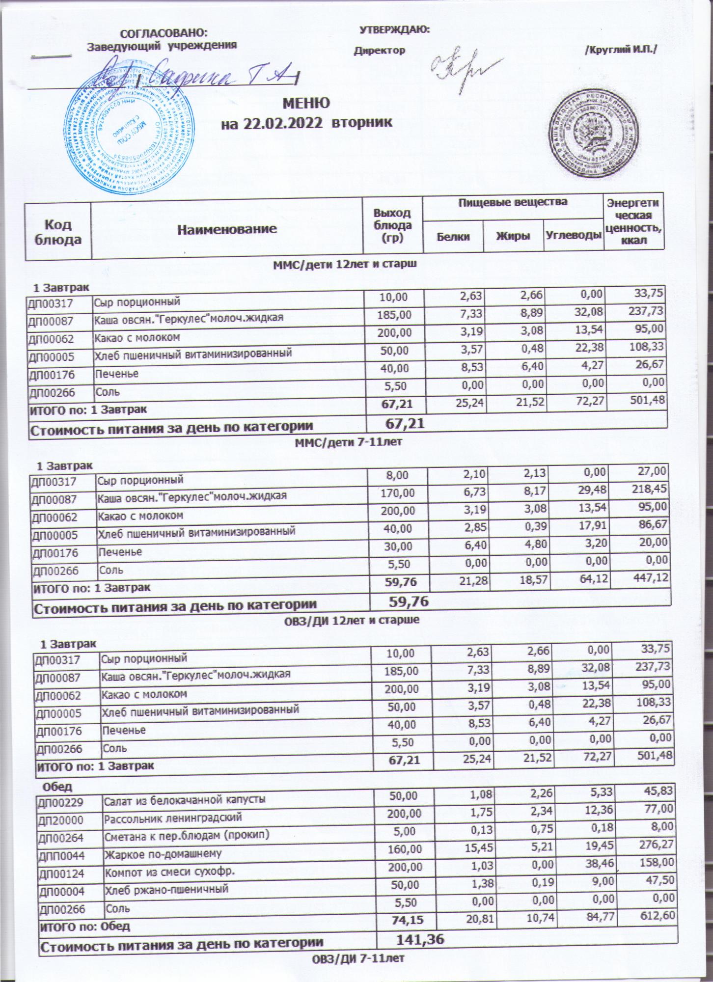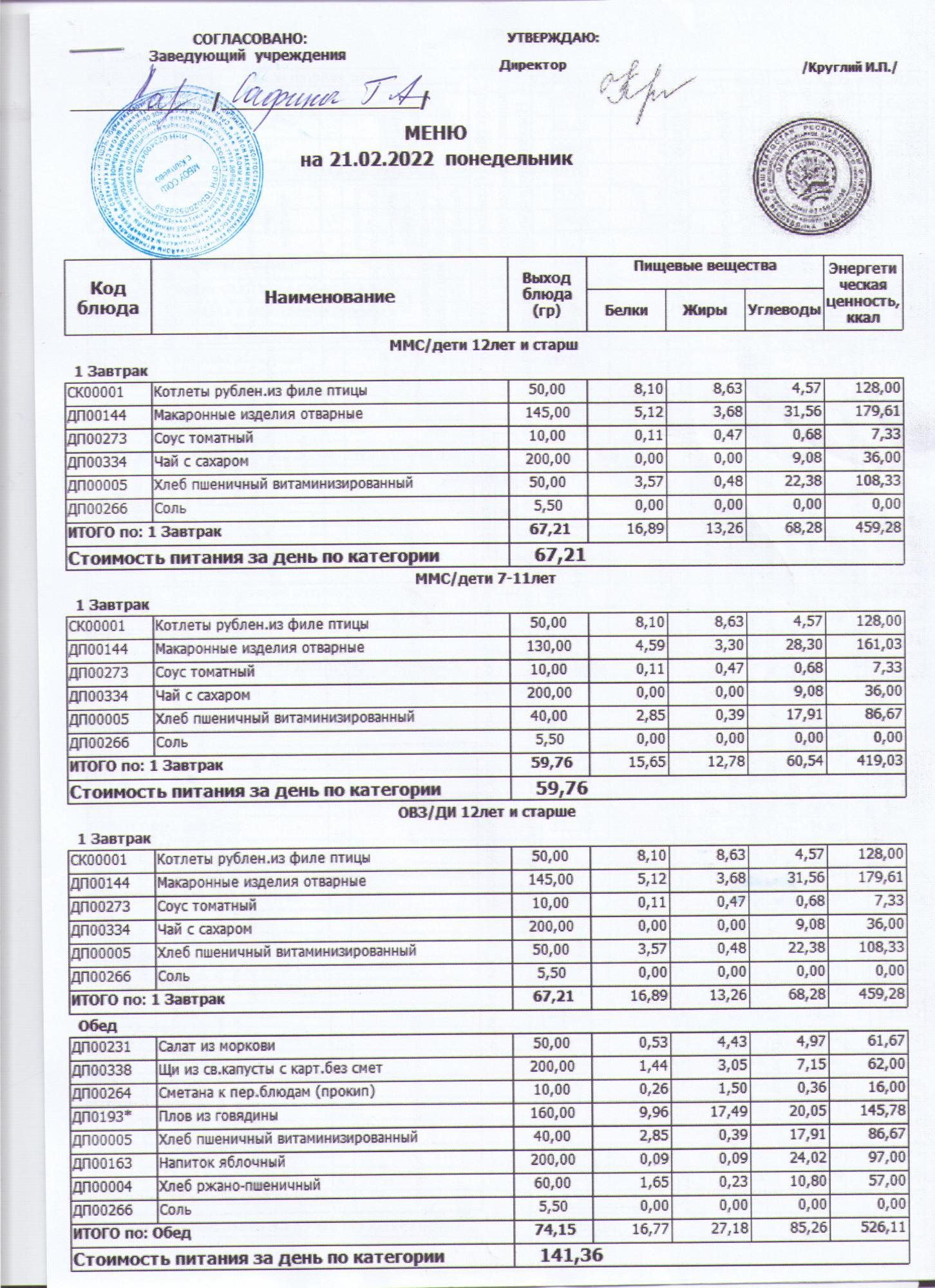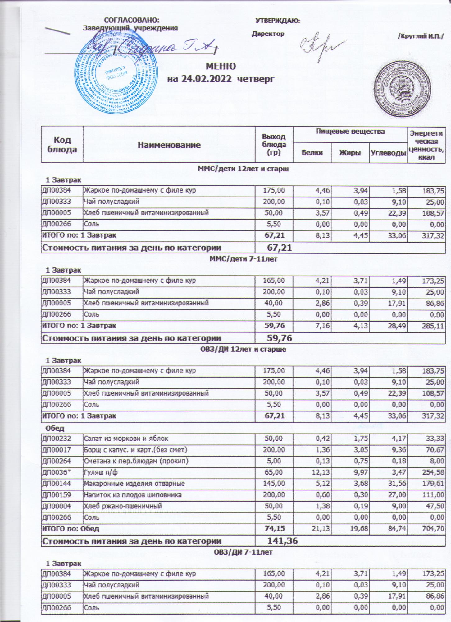 меню на 24.02.2022