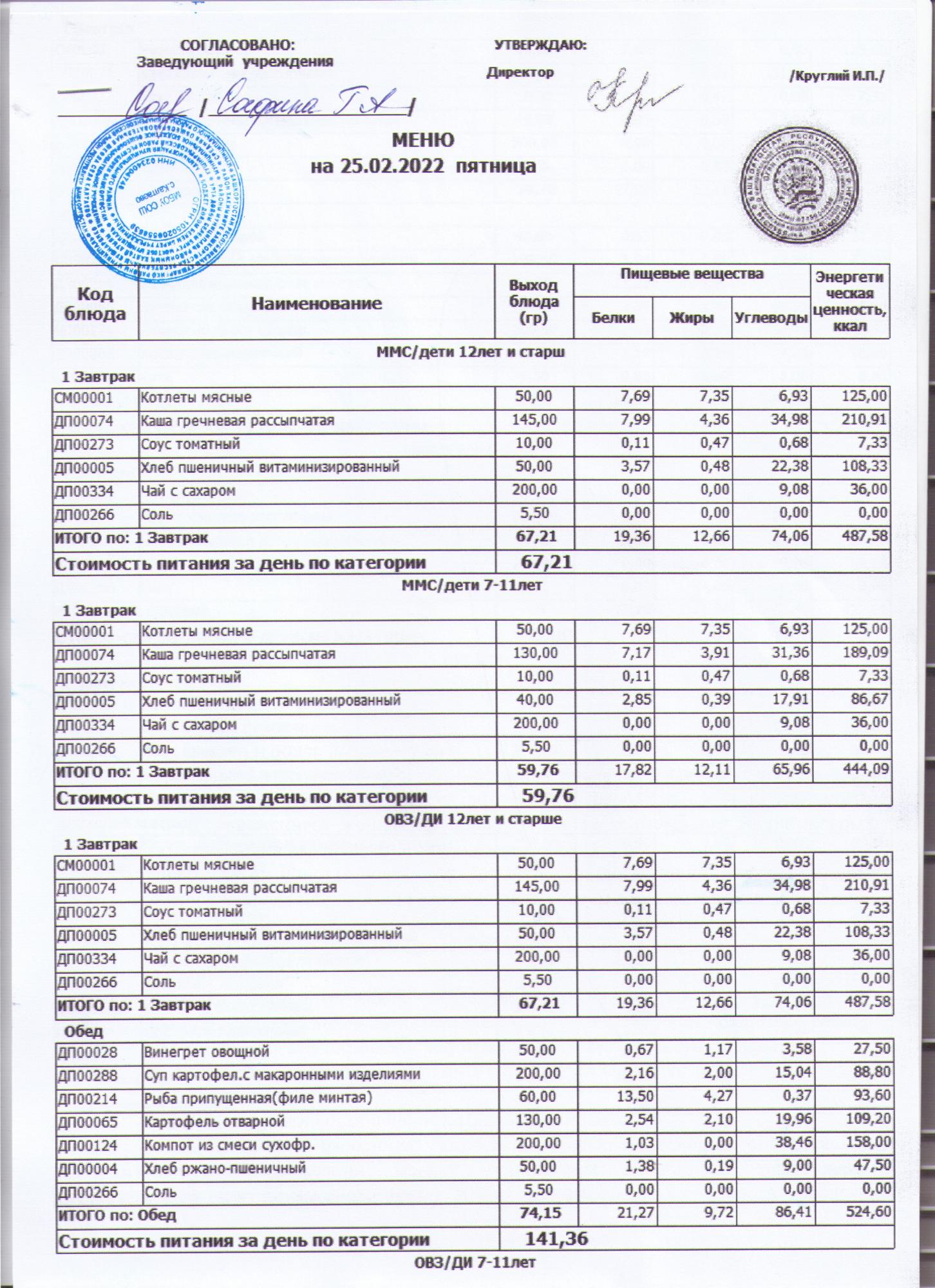 меню на 25.02.2022
