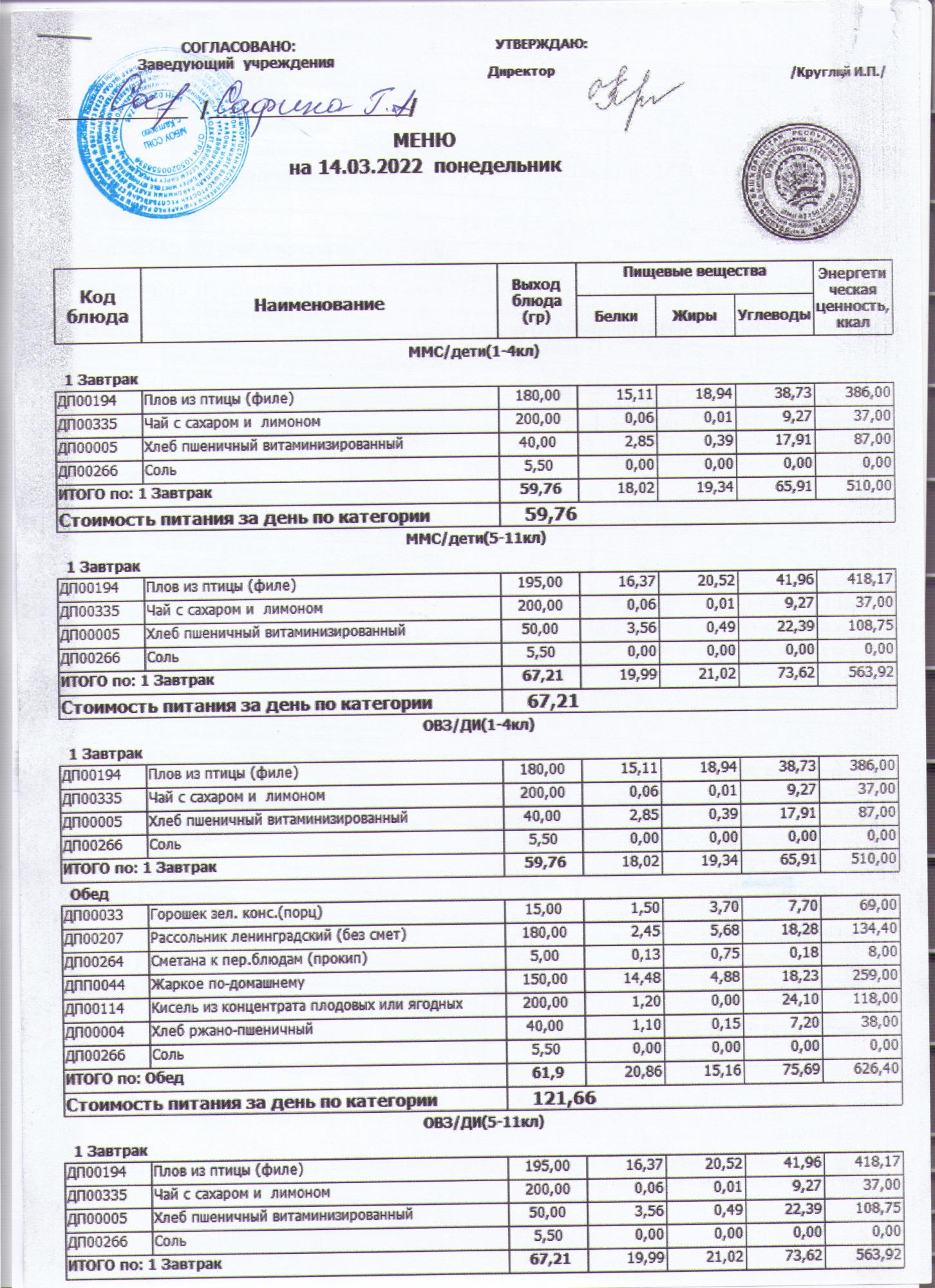 меню на 14.03.2022