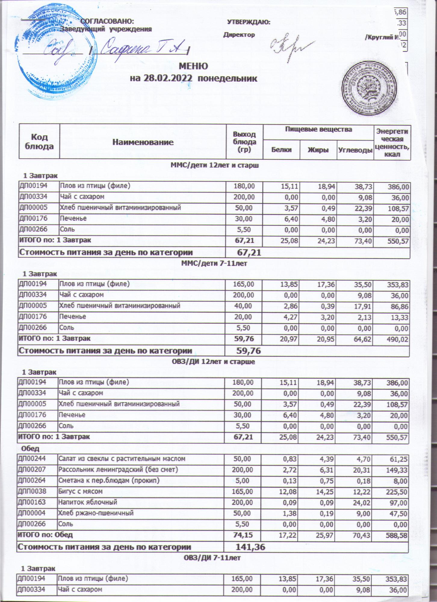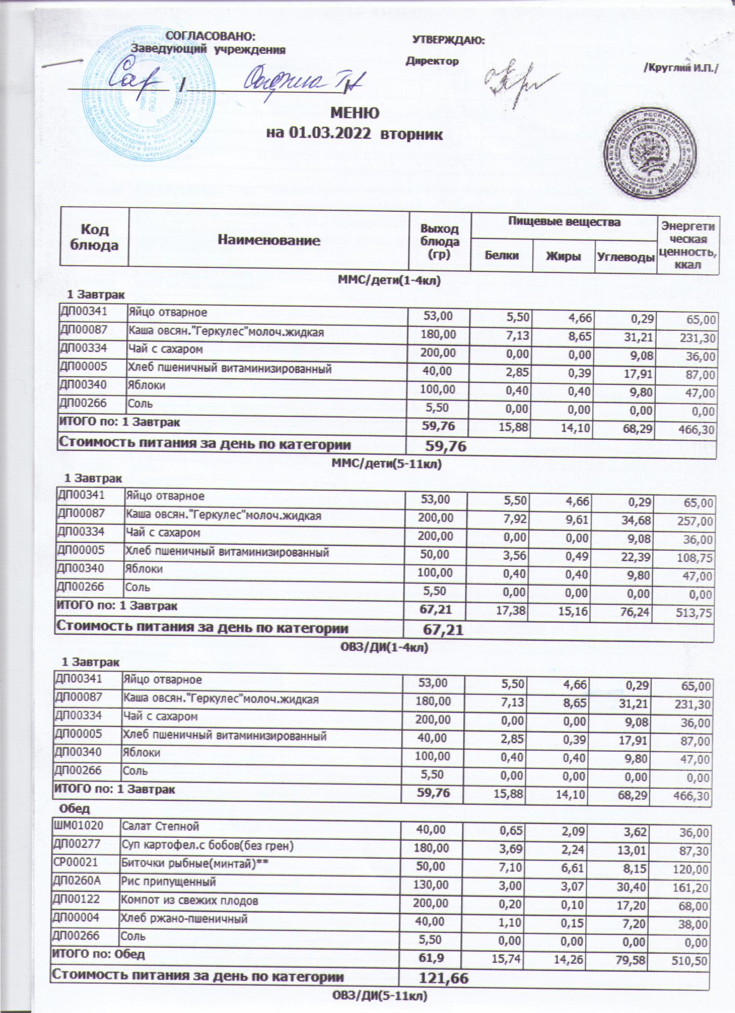 меню на 01.03.2022