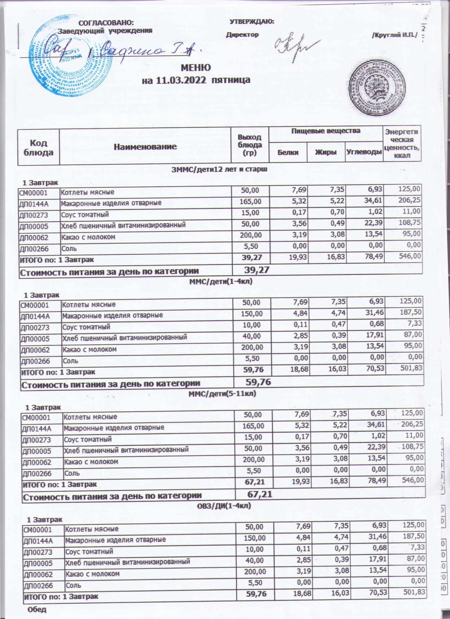 меню на 11.03.2022