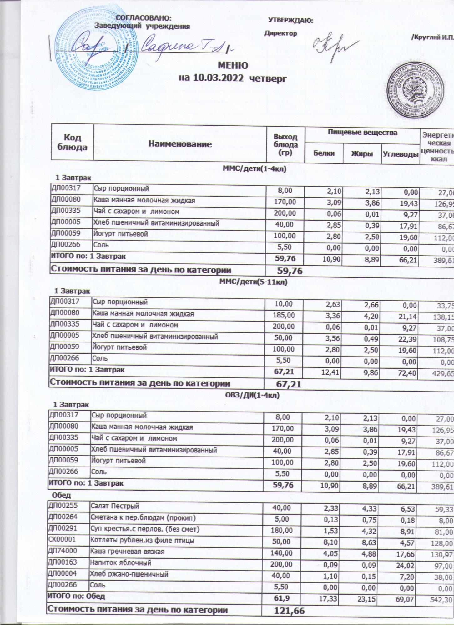 меню на 10.03.2022