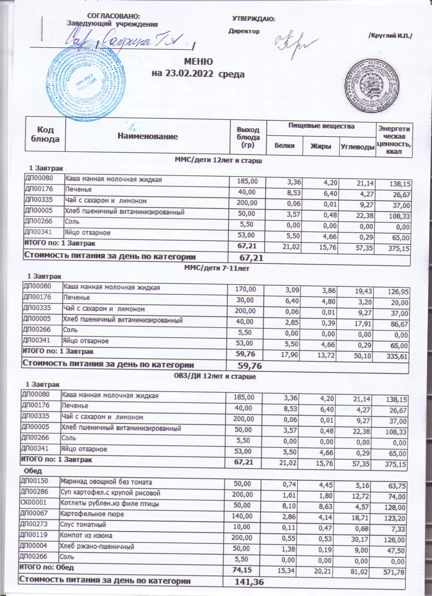 меню на 23.02.2022