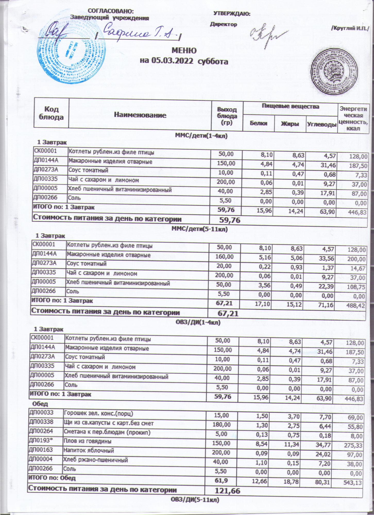 меню на 05.03.2022