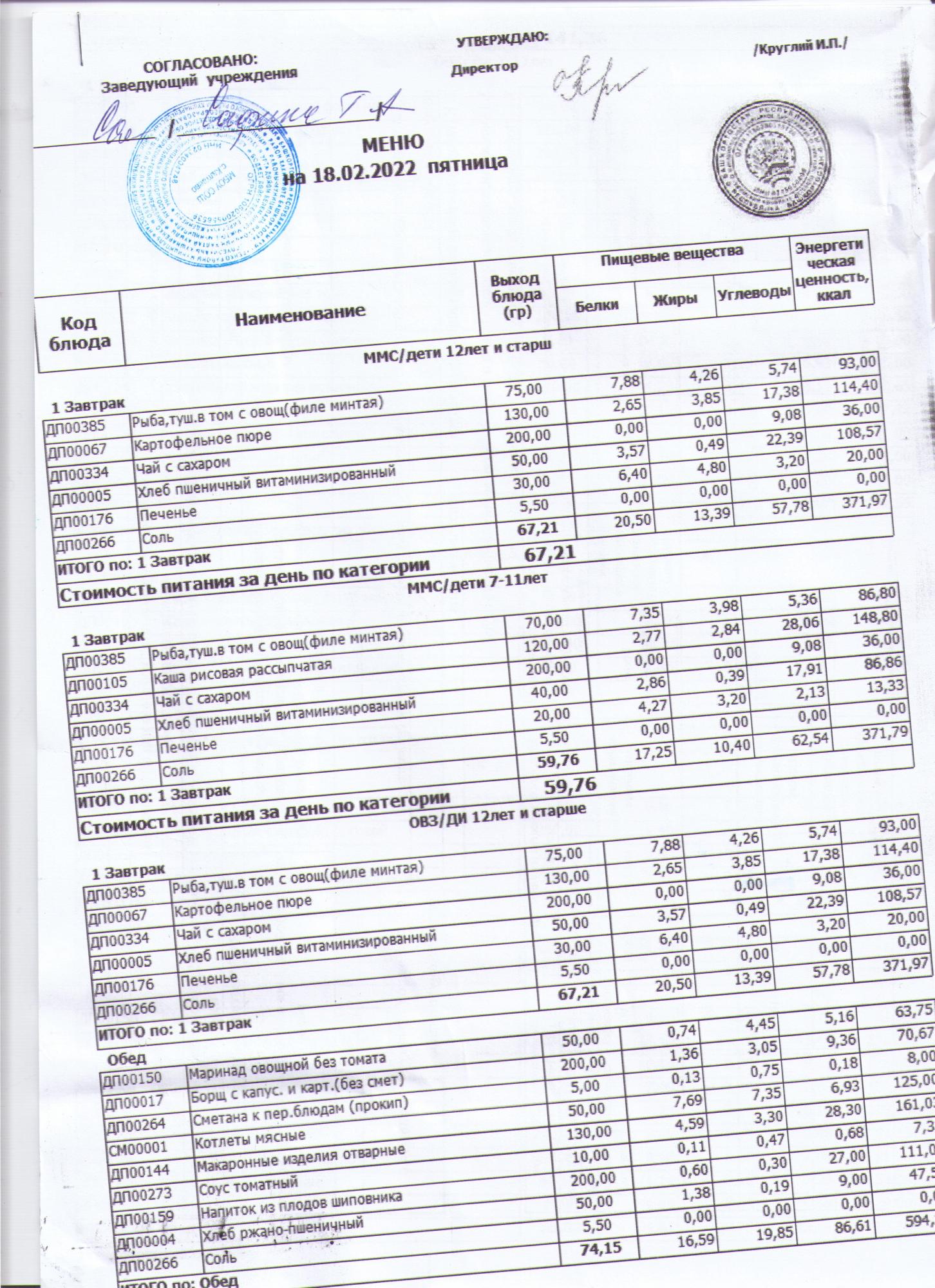 меню на 18.02.2022