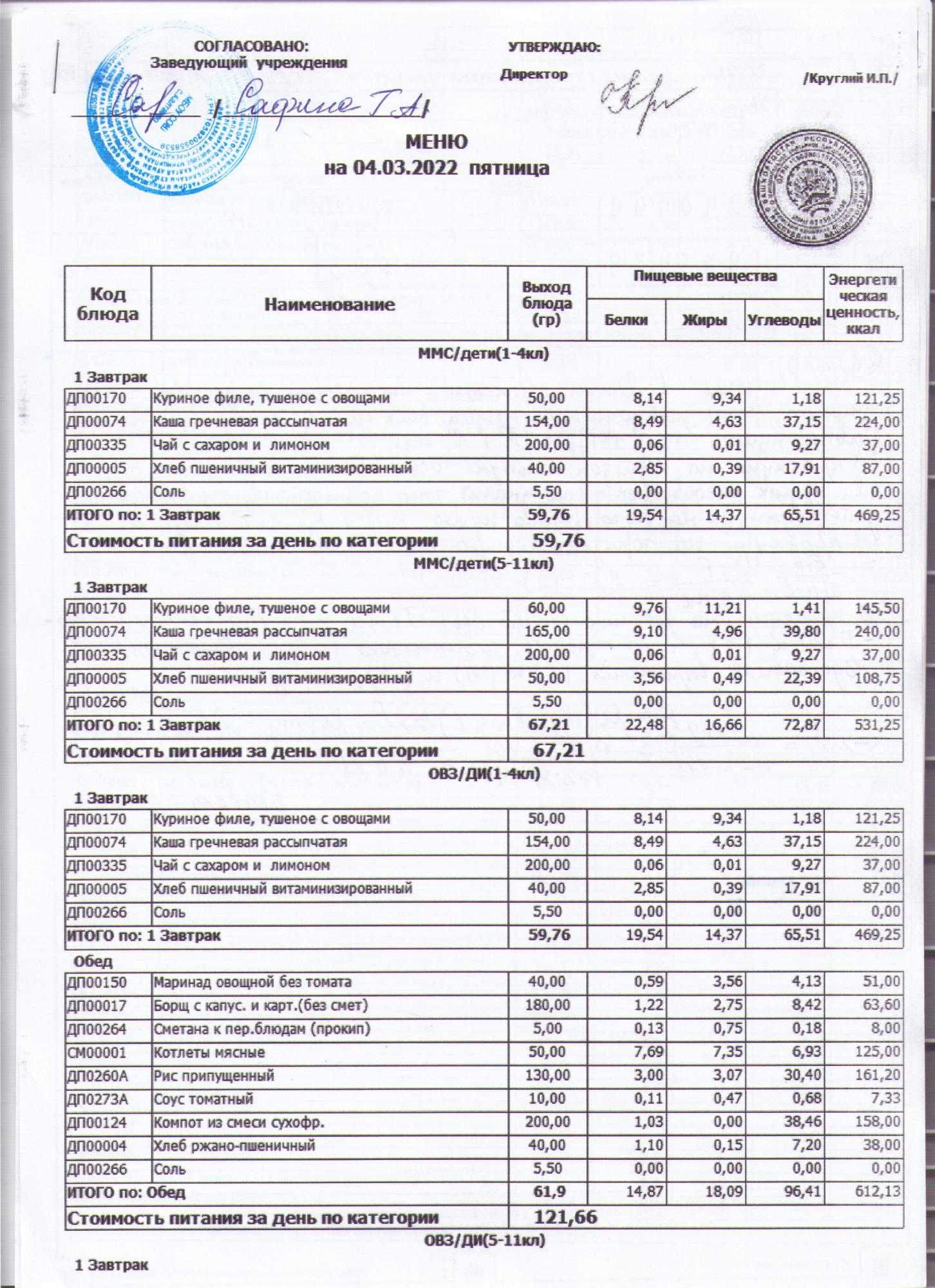 меню на 04.03.2022
