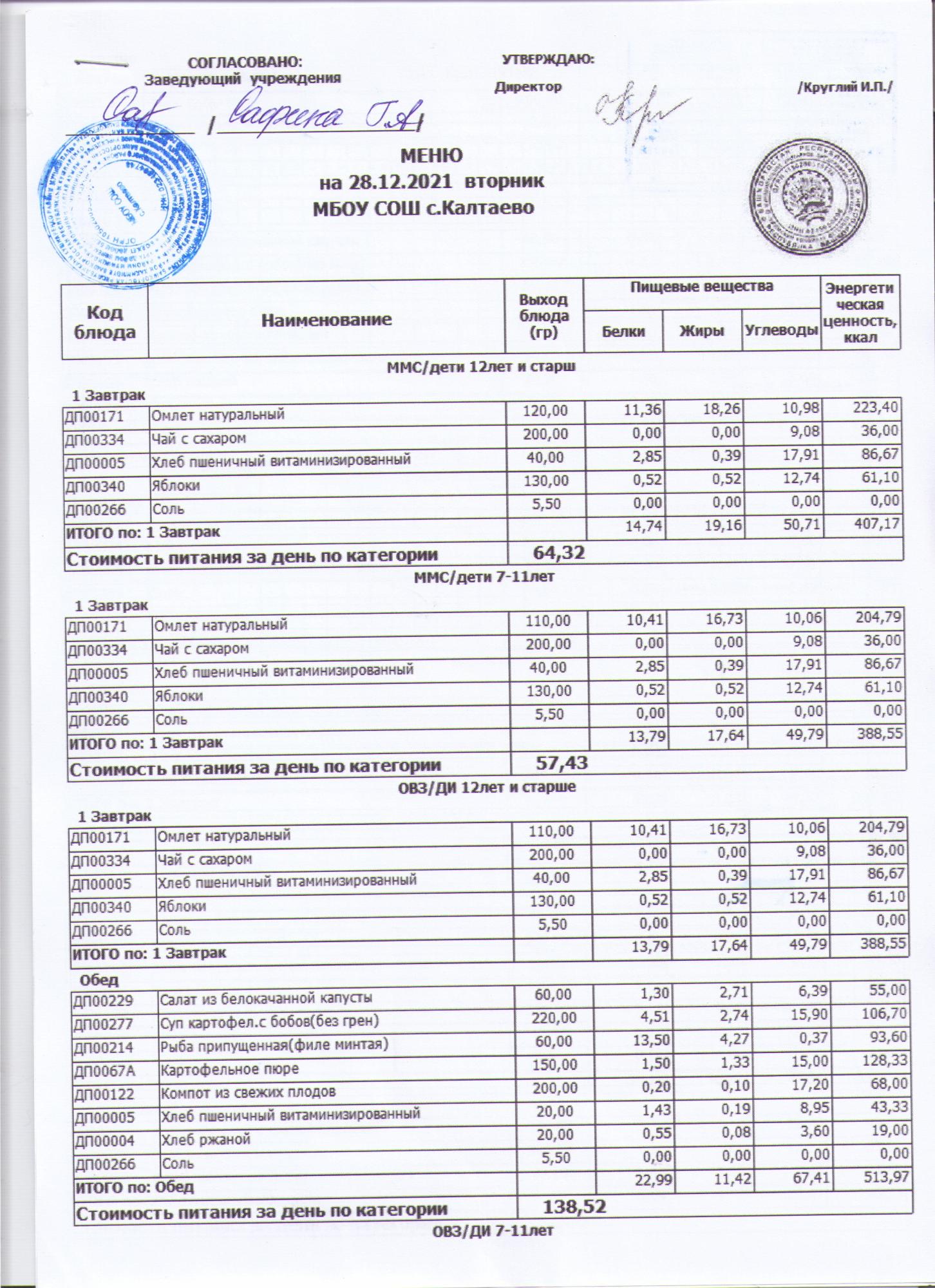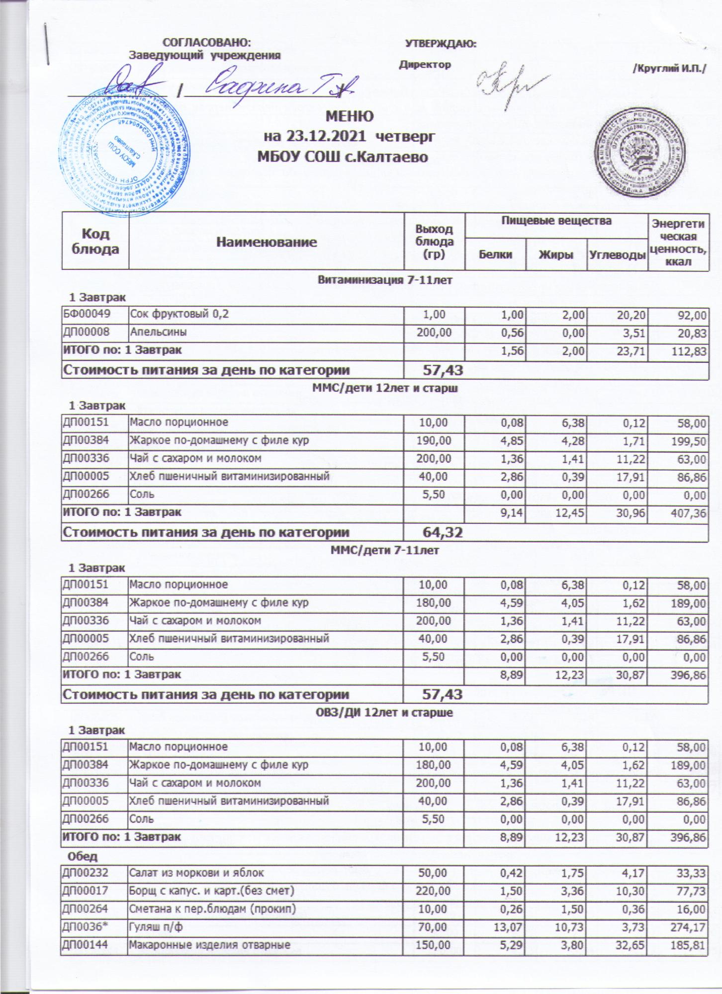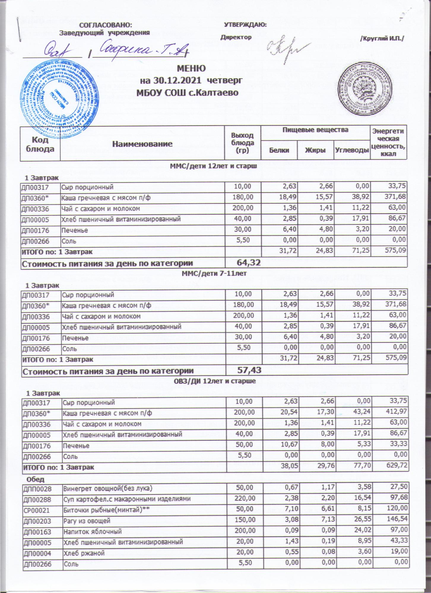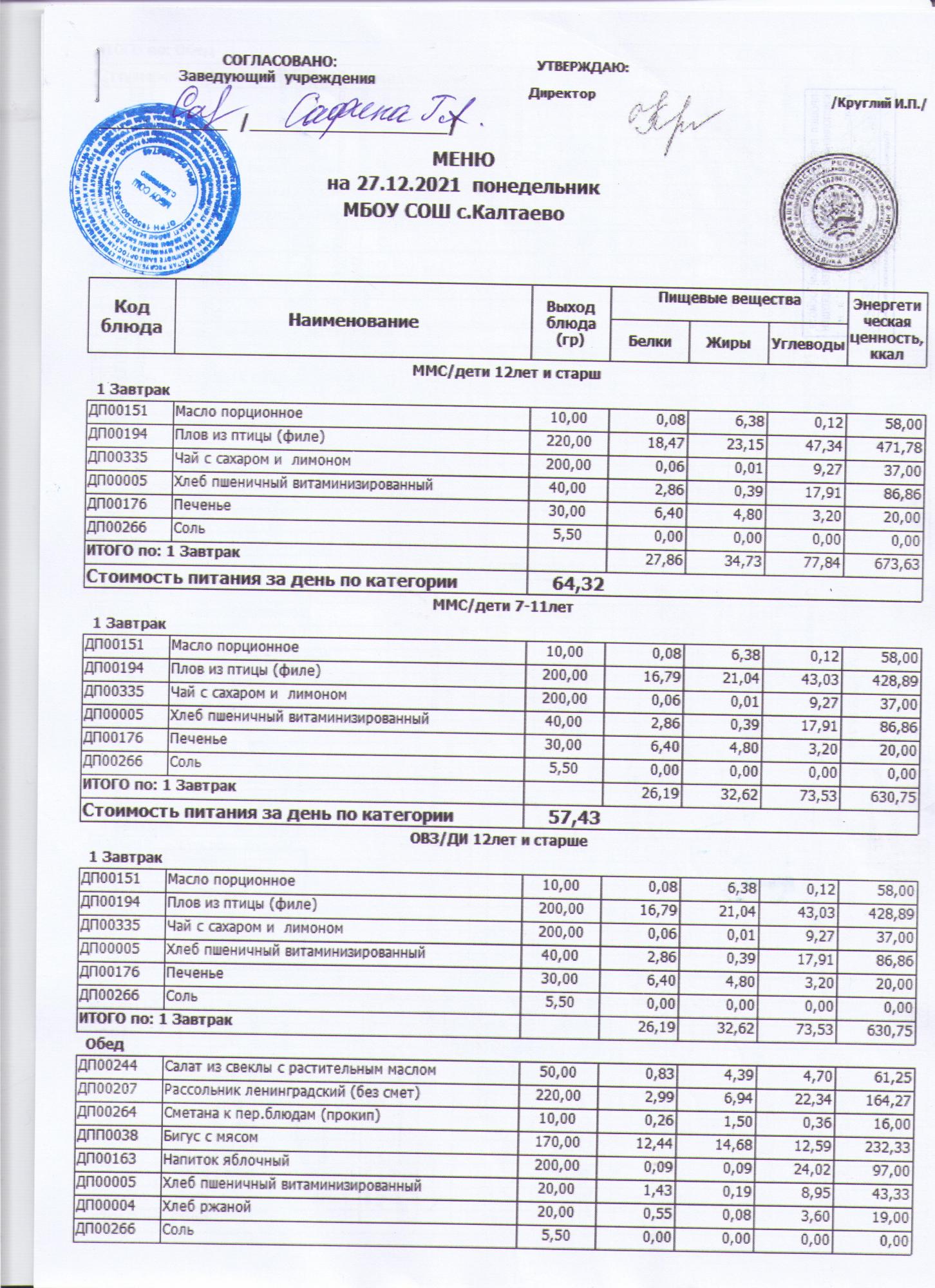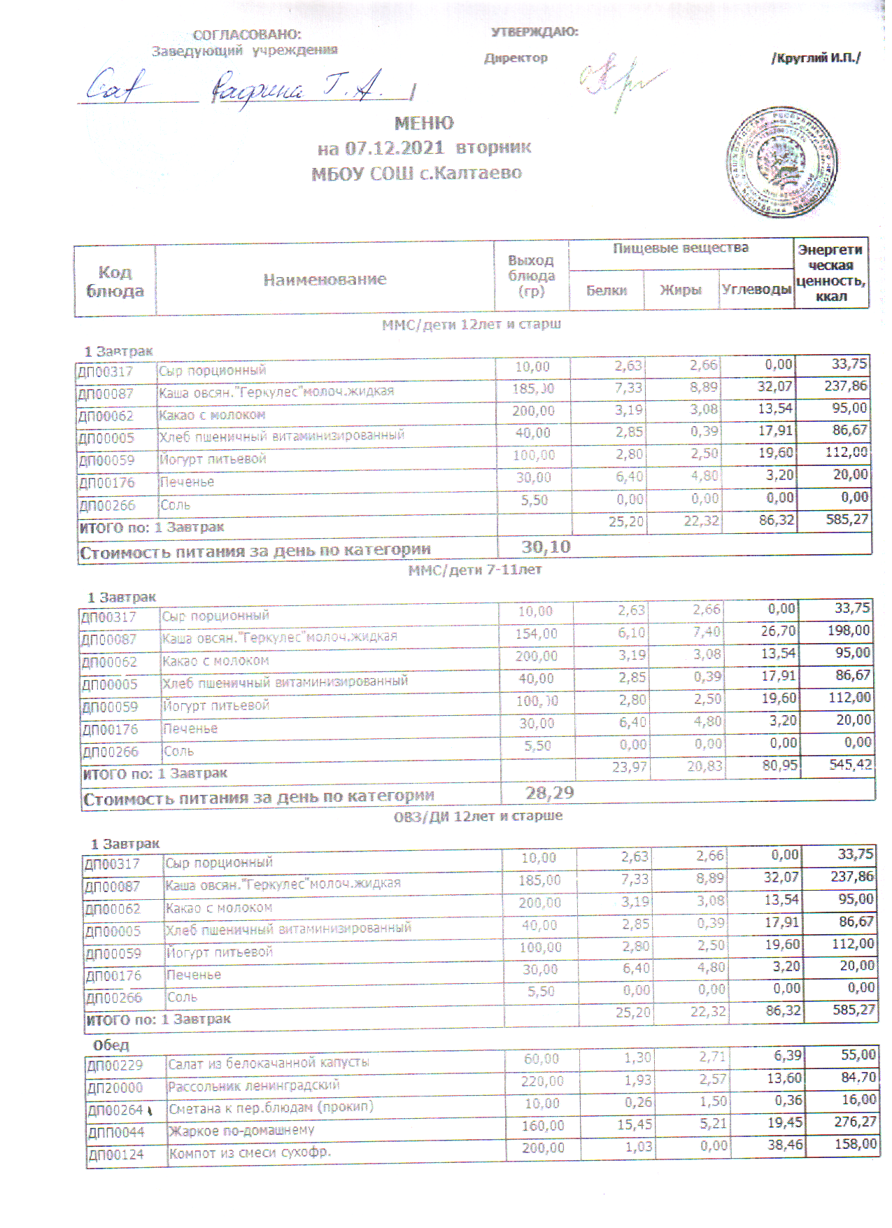 меню на 07.12.2021
