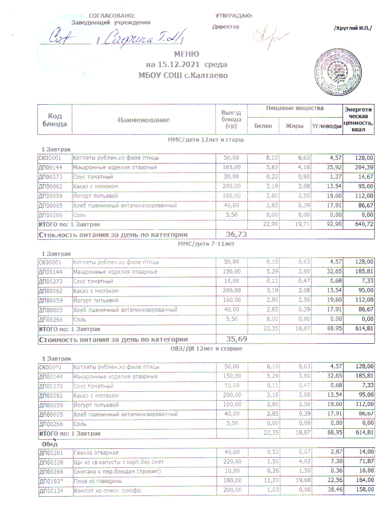 меню на 15.12.2021
