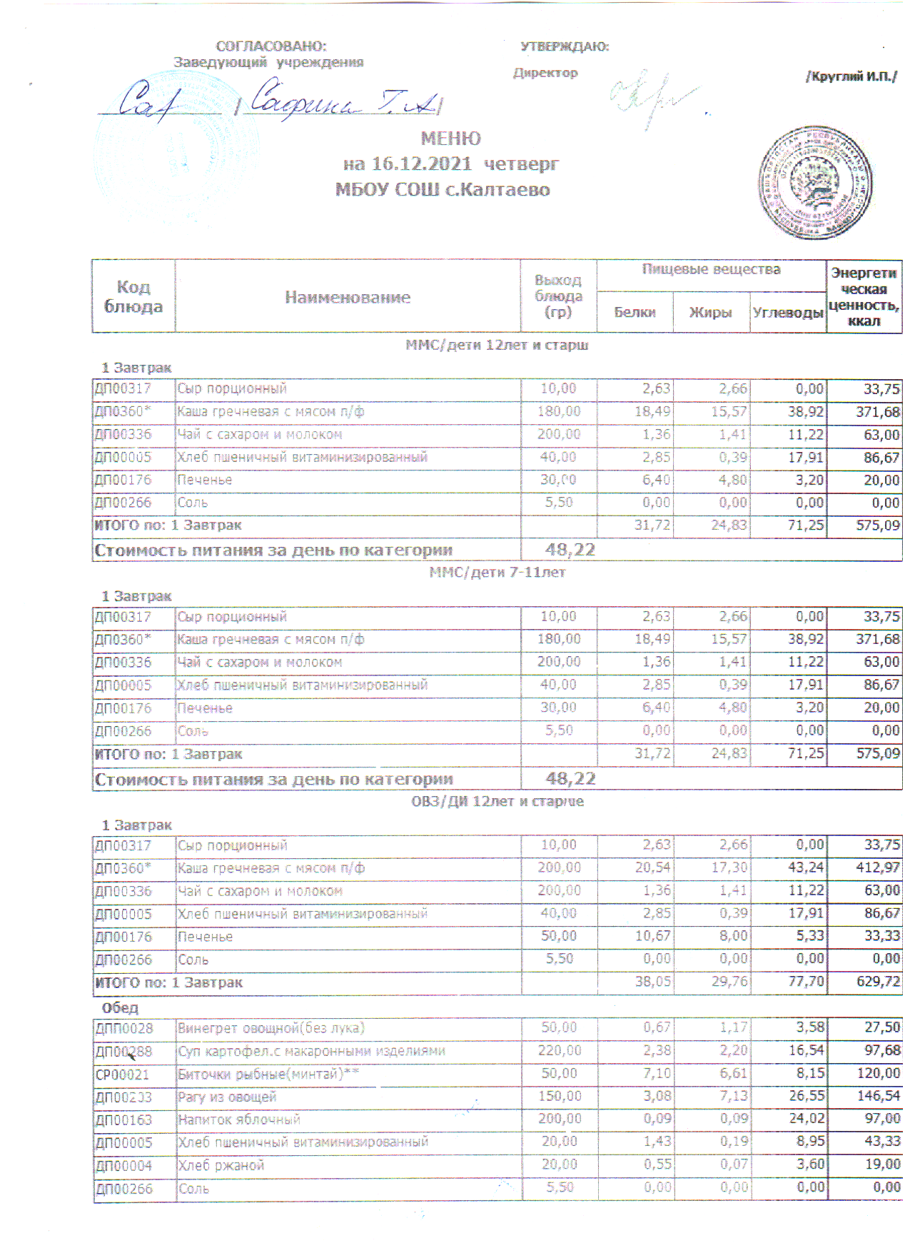 меню на 16.12.2021