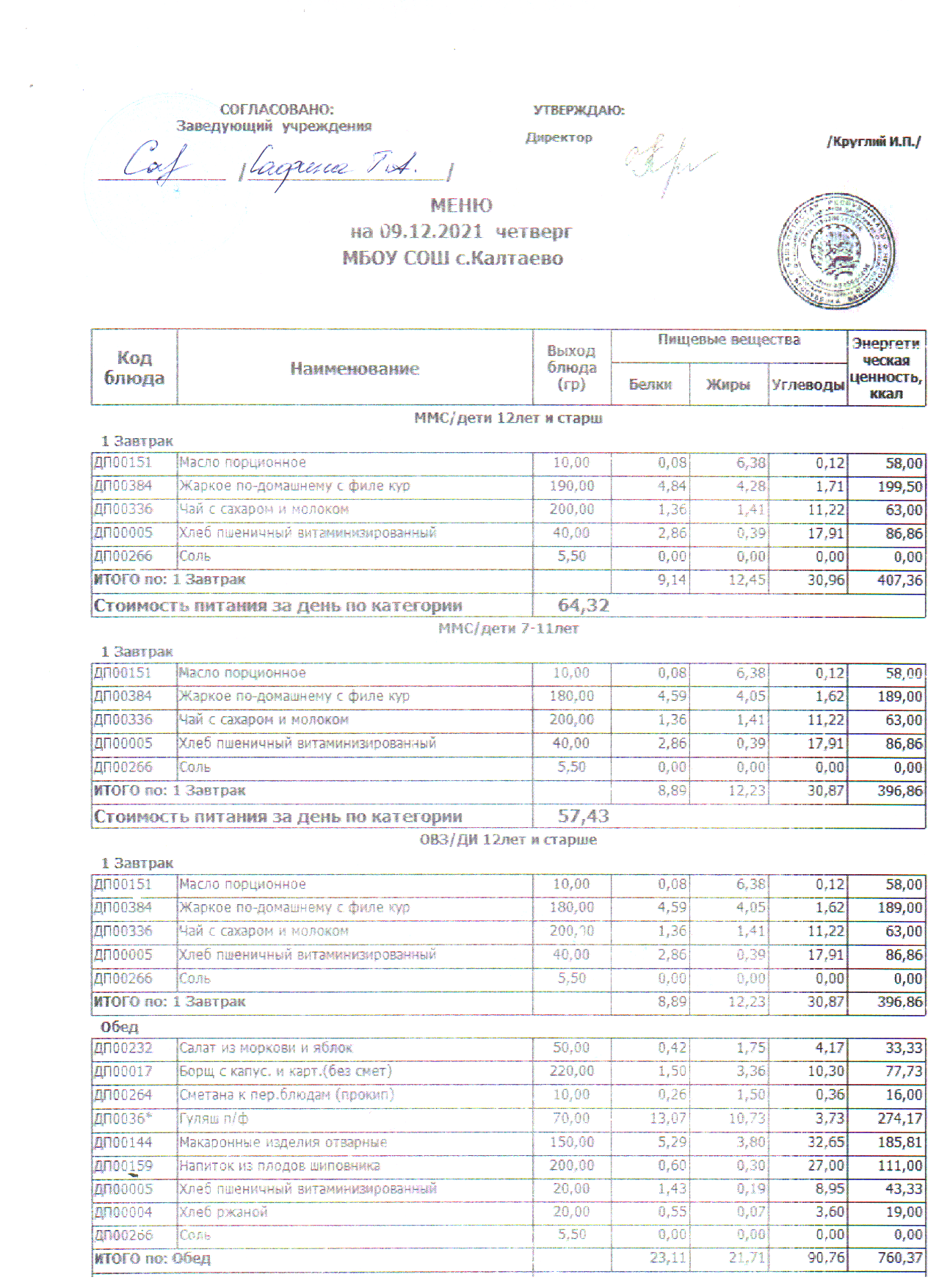 меню на 09.12.2021