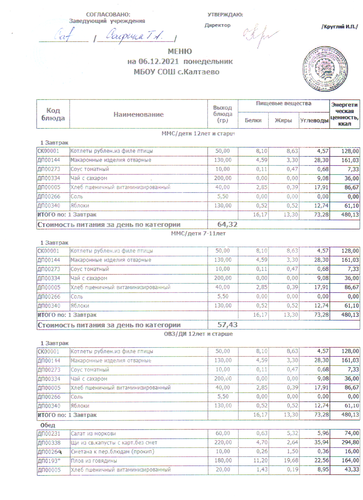 меню на 06.12.2021