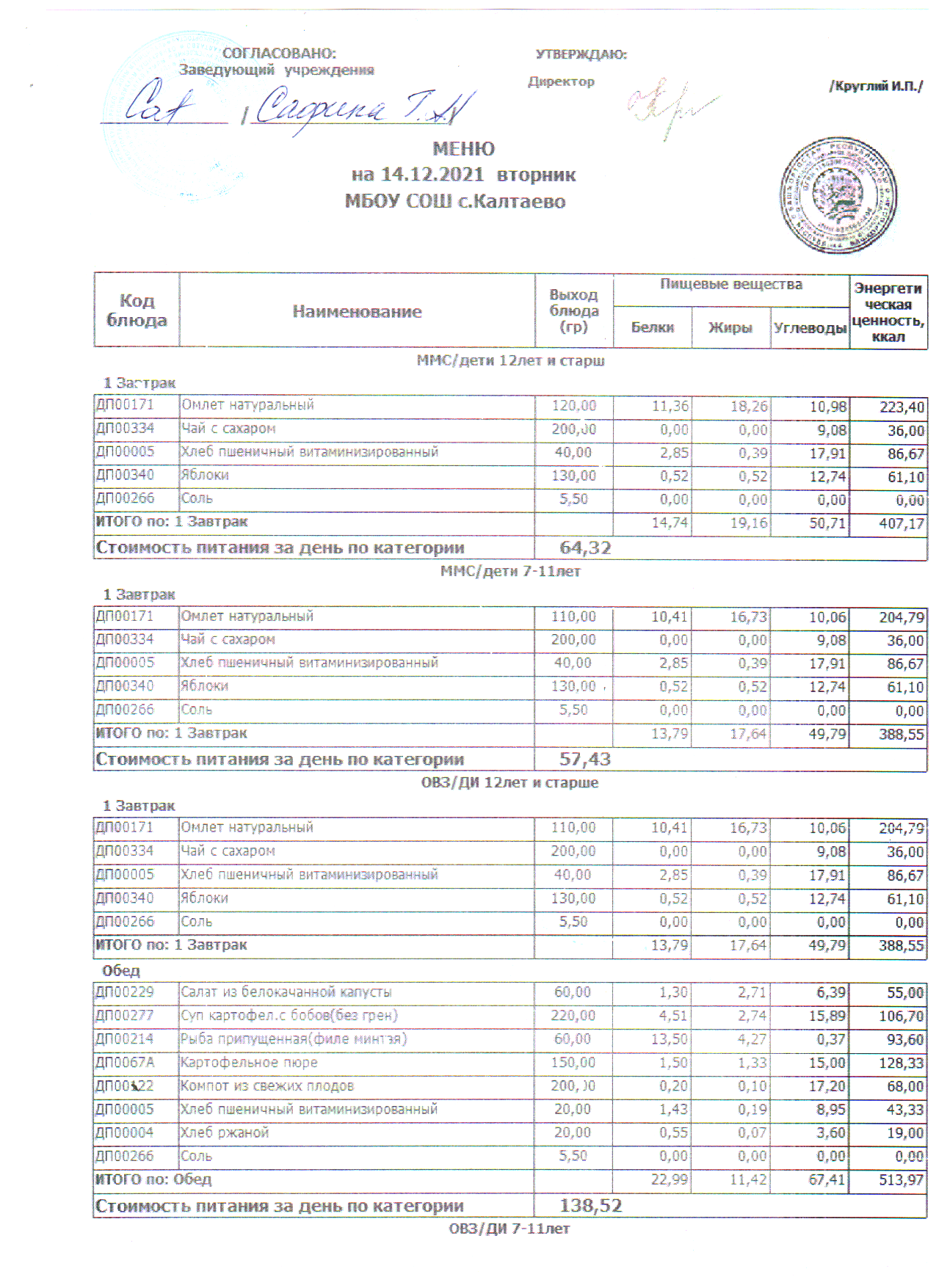 меню на 14.12.2021