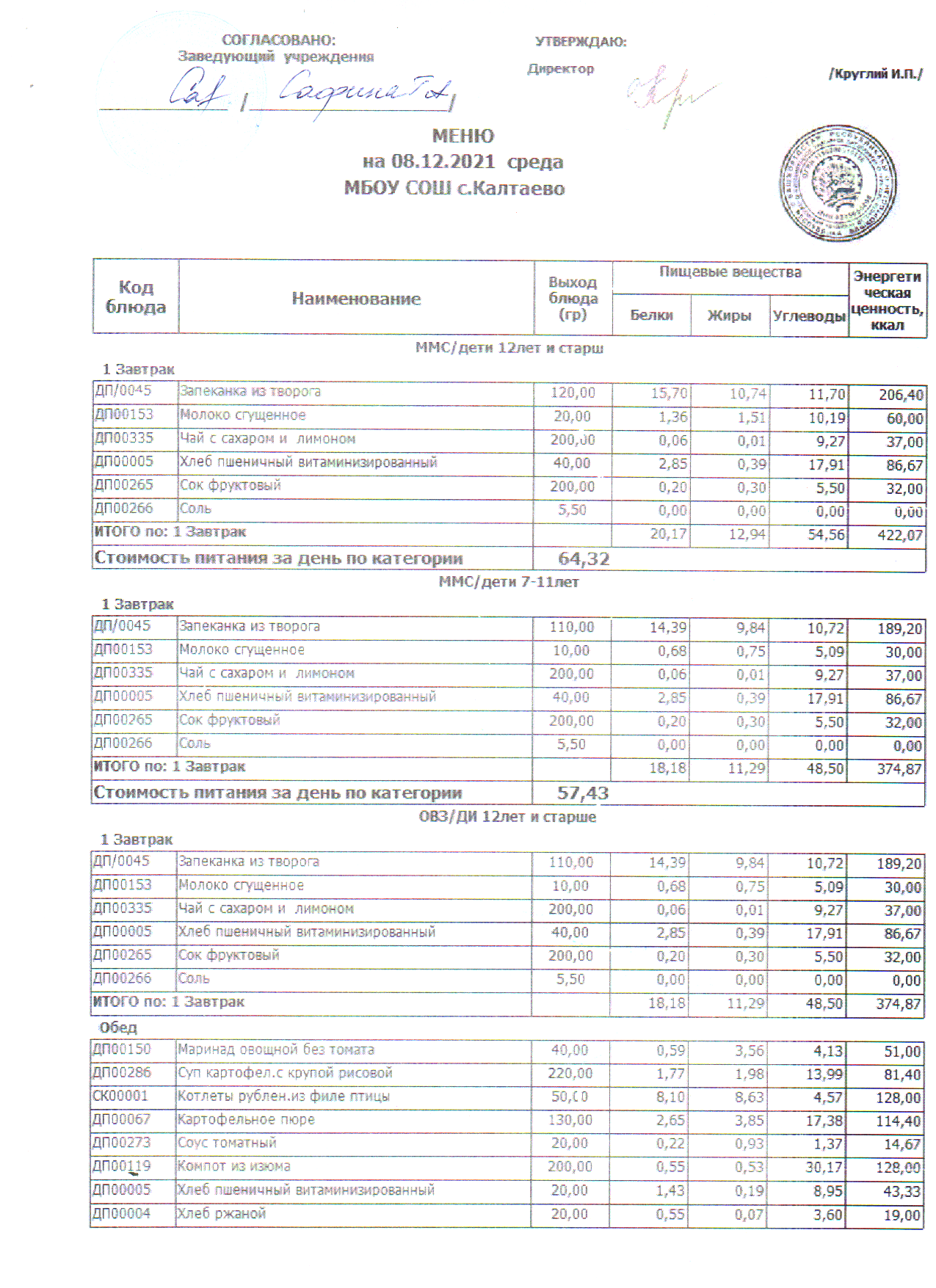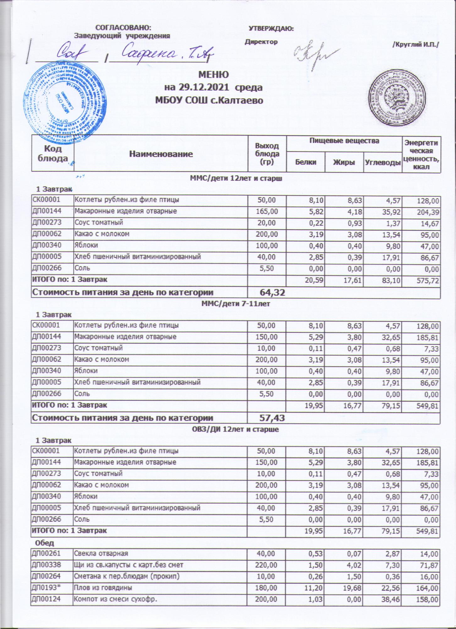 меню на 08.12.2021