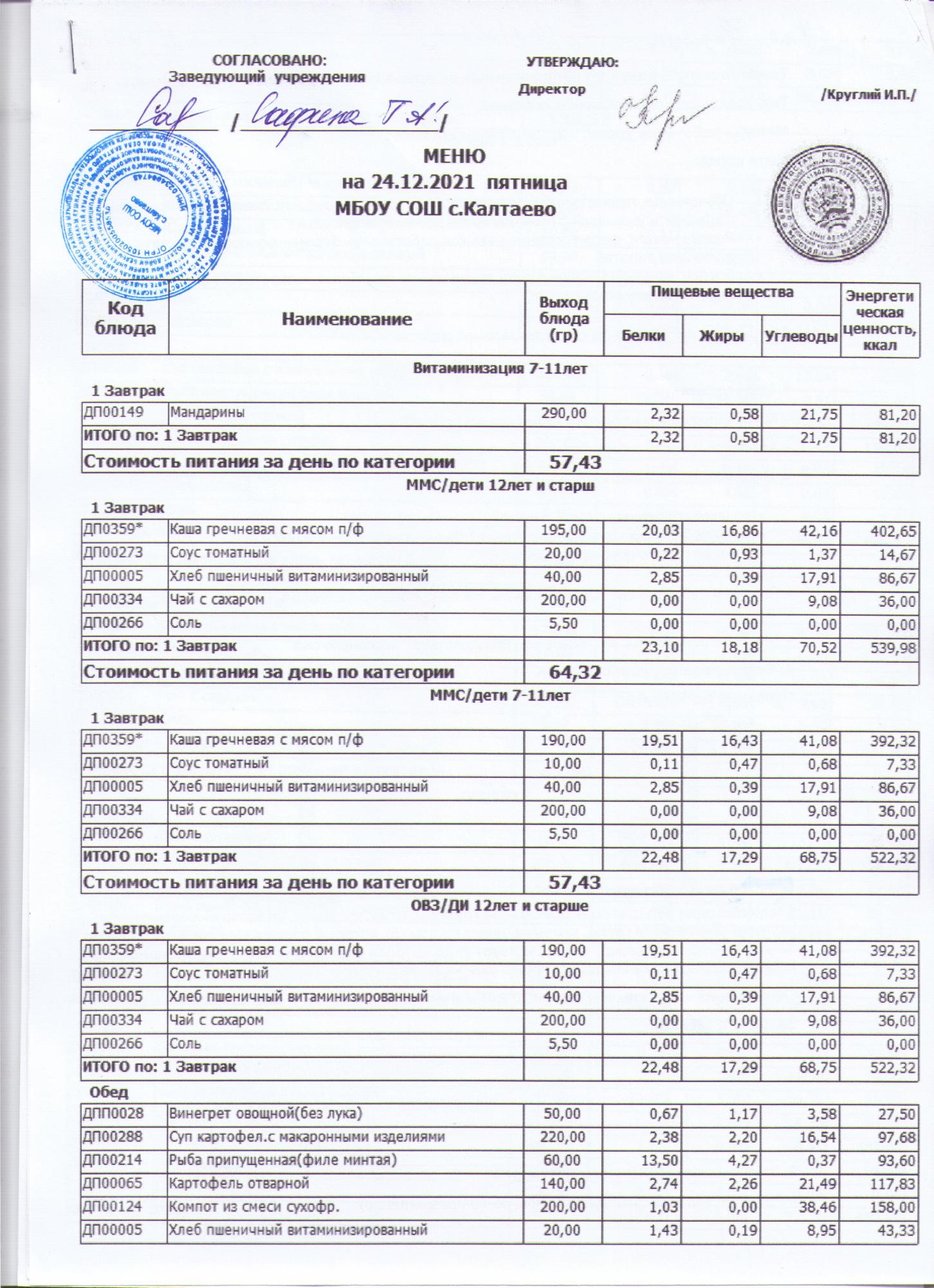 меню на 24.12.2021