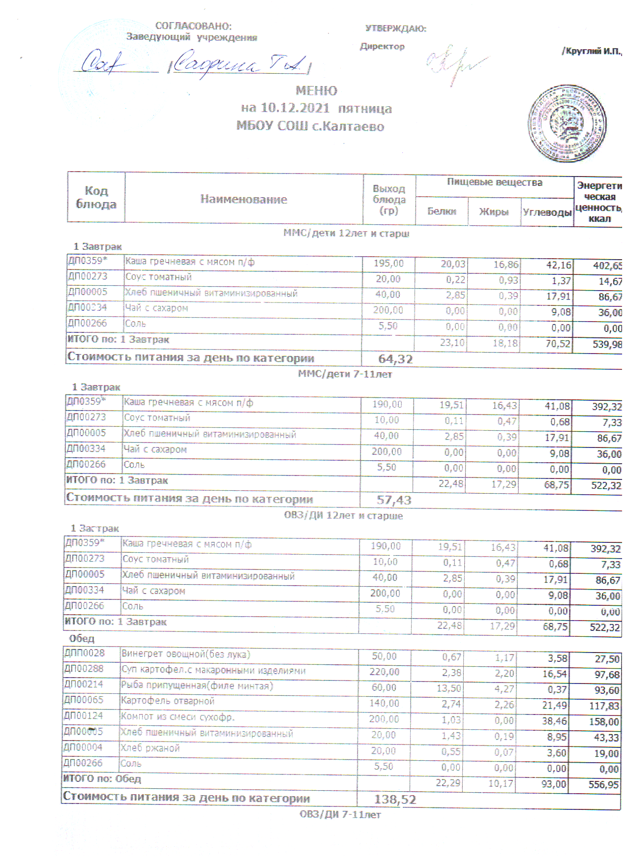 меню на 10.12.2021